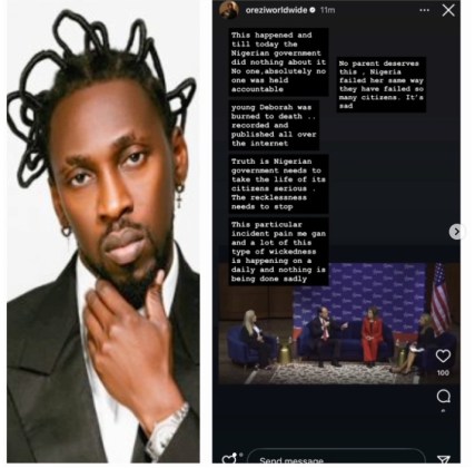 Singer Orezi has reacts to U.S. President Donald Trump’s  warning to Nigeria over alleged Christian persecution, linking it to the brutal k!lling of Deborah Samuel