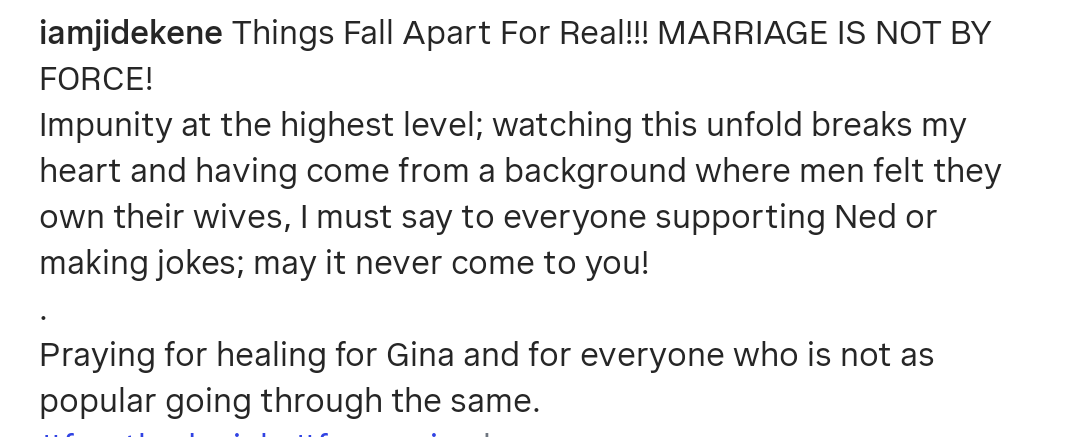 Watching this unfold breaks my heart. Coming from a background where men believed they ‘owned’ their wives, I must say to everyone supporting or joking about this — may it never come to you.