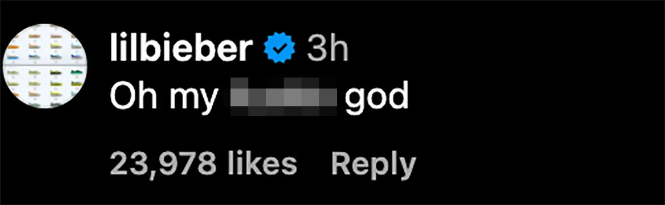 “Oh my f—ing god,” Justin wrote in the comment section in reaction to his wife’s photos.