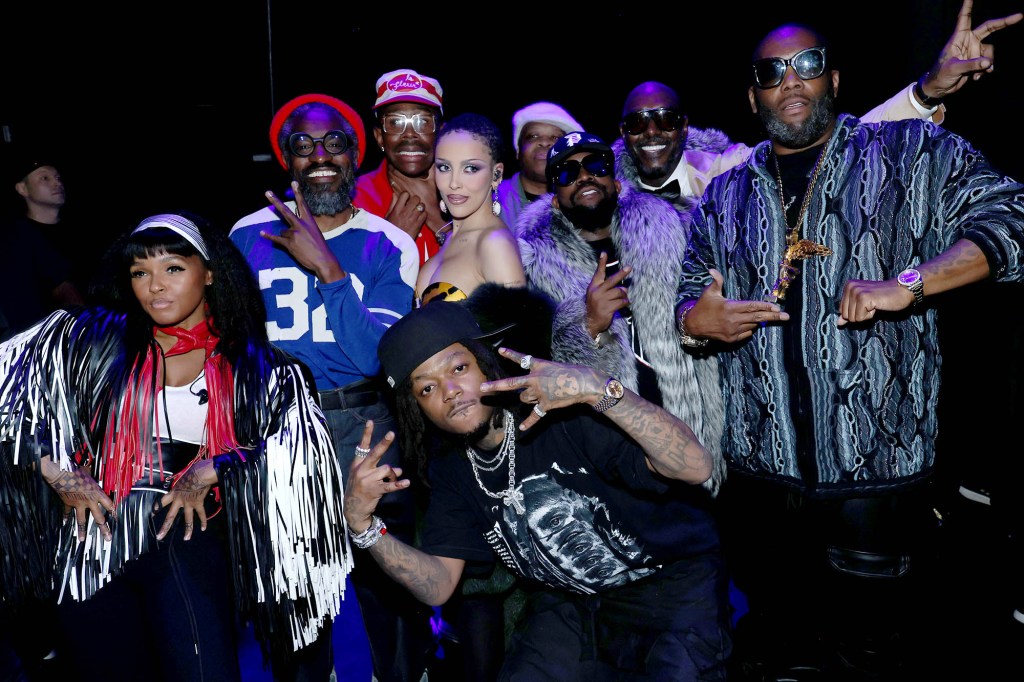 With that, Big Boi and the newly Grammy-nominated Atlanta rapper J.I.D. opened the set with “ATLiens” before tossing it over to Doja Cat for “Ms. Jackson.” Doja sang André 3000’s bridge before breaking into a choppy performance of his rap verse, but Tyler, the Creator picked it up from there, bursting onto the stage with “B.O.B. (Bombs Over Baghdad).” Fittingly, Janelle Monáe was assigned the true-classic single “Hey Ya!” Monae blazed through the song with some theatrical support from a crew of dancers. André 3000 did not perform.