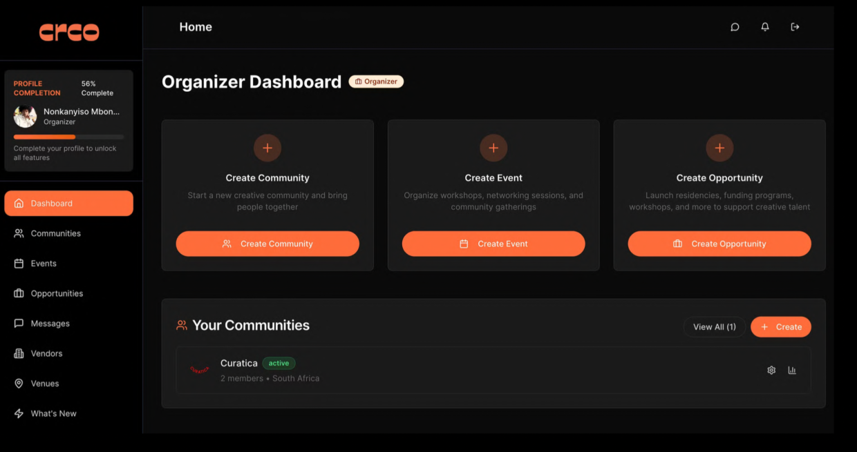 Phiri’s solution is CRCO, a single, integrated platform for community building, event management, and opportunity discovery. For organisers, this central dashboard allows them to manage the entire event lifecycle, including selling tickets, finding, hiring, and paying vendors and venues directly on the platform. Creatives and attendees, in turn, get a centralised place to discover new opportunities, events, and networks that are currently buried across multiple apps.
