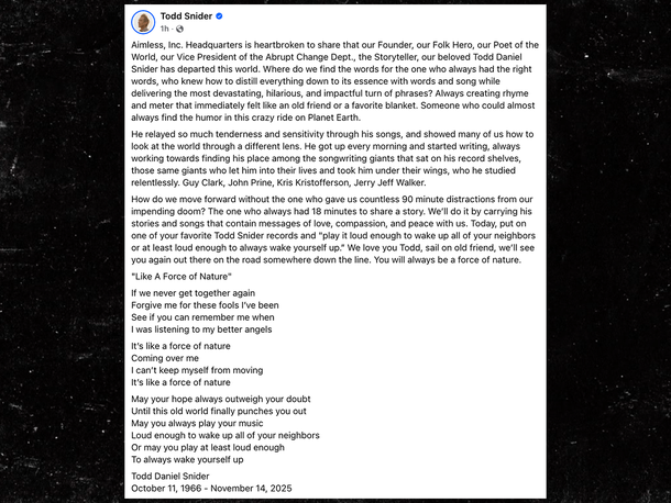 Todd Snider — known for majorly influencing the alt-country and Americana music genres — has died.