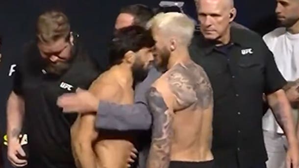 Arman Tsarukyan is taking his fight against Dan Hooker head-on — literally — ’cause he butted his opponent right in the noggin during a tense weigh-in altercation.
