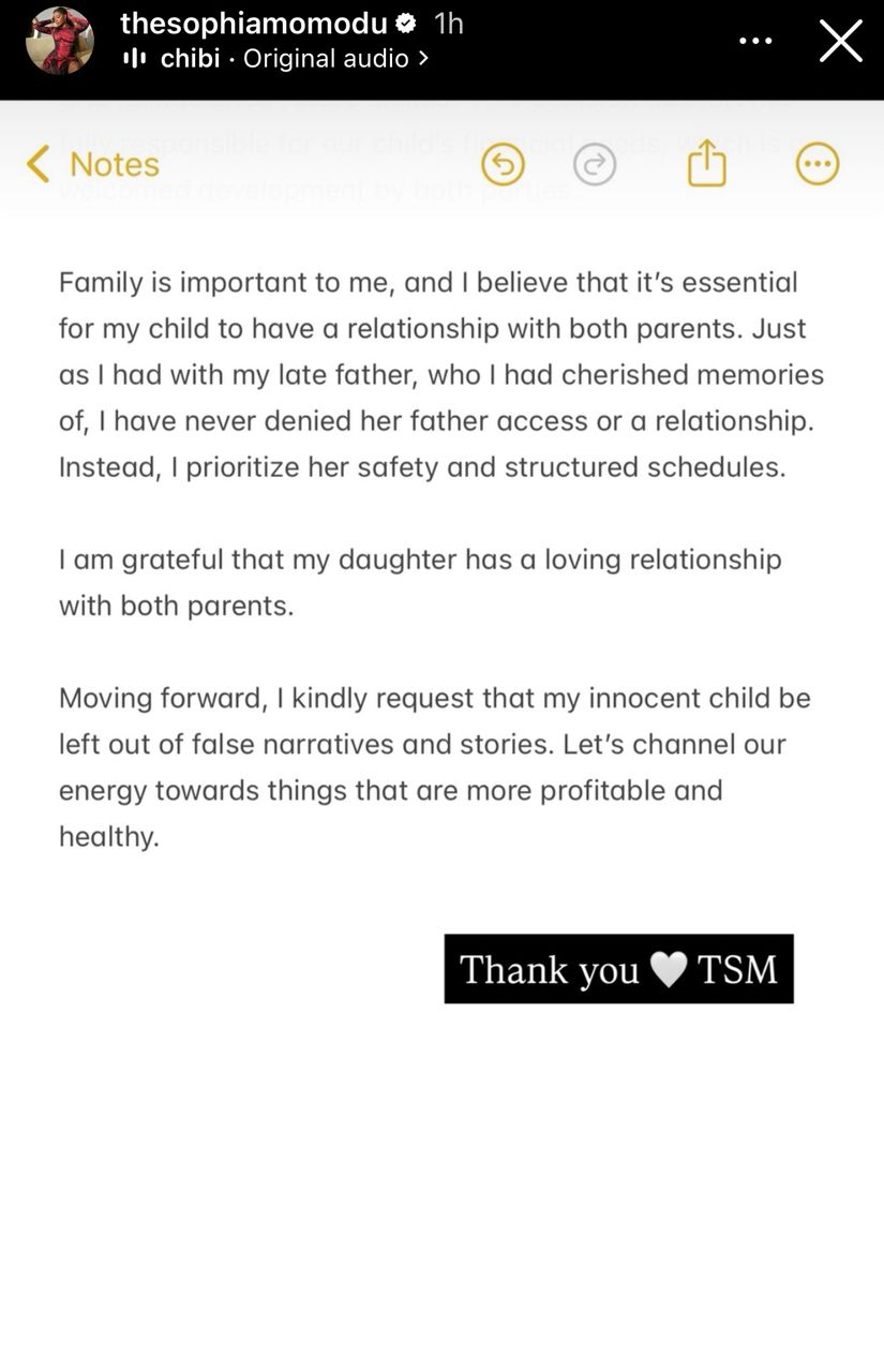 In a statement released this morning, Sophia said she woke up to see the attacks on her and her daughter after the wedding. She mentioned that she has been Imade’s primary caregiver for the past five years now and have handled all Imade’s expenses except her school fees which her paternal grandparent has graciously handle for three years now.