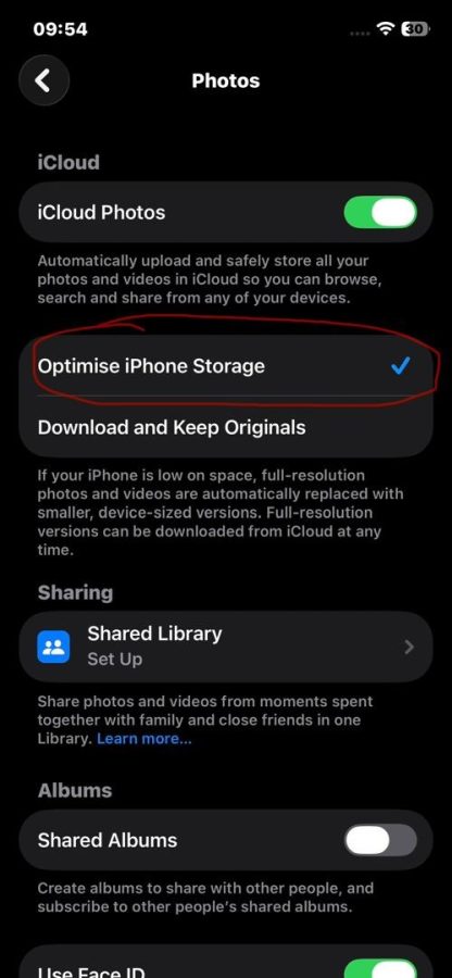 3. Use optimised photo storage: Under Settings > Photos, enable Optimise iPhone Storage. This keeps full-resolution images in iCloud but smaller, space-saving versions on your device.