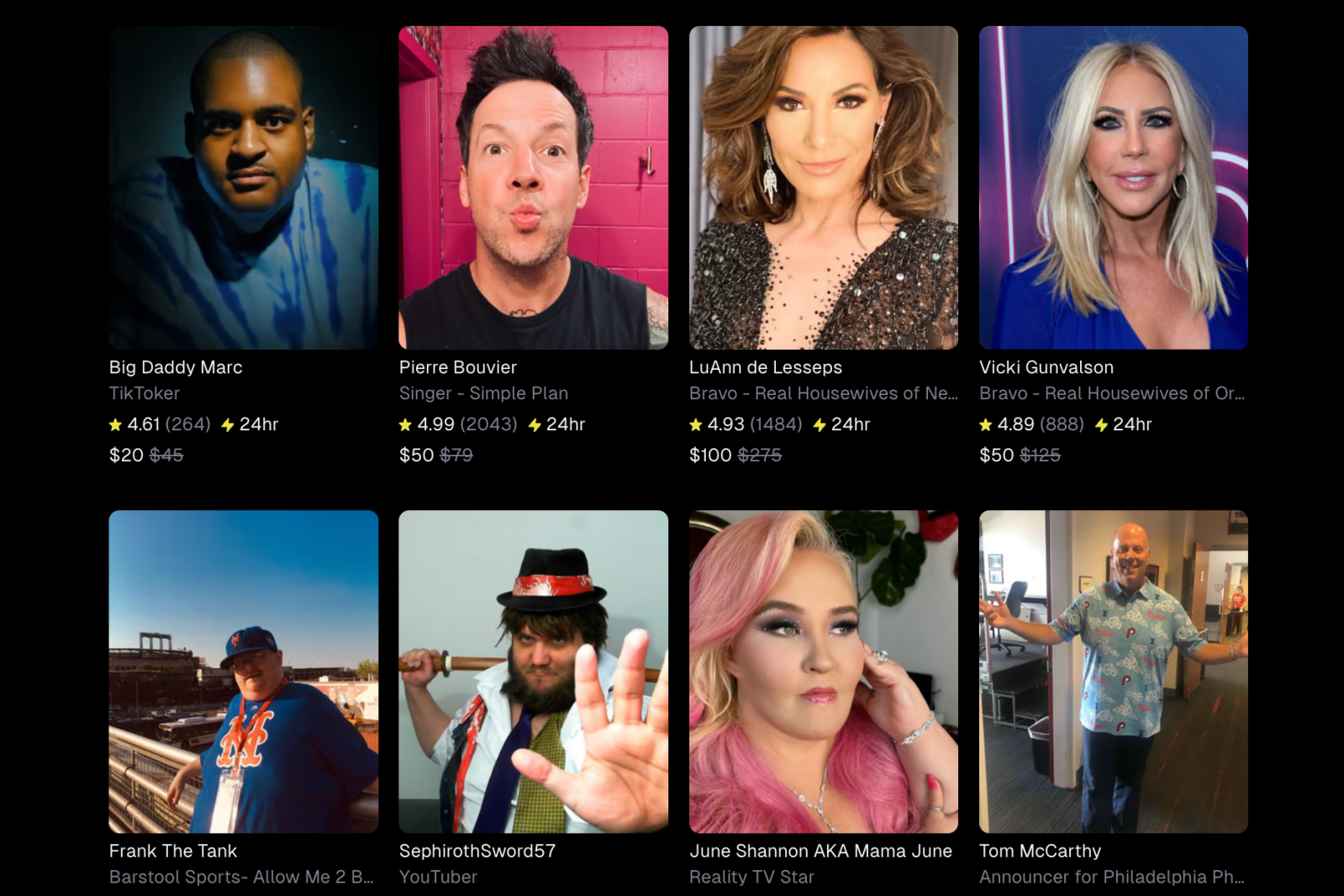 The online service, where fans can book celebrities and influencers to deliver personalized video greetings, has launched its 2025 Black Friday sale, with a 20% discount across the site. We spotted talent available to book from as low as $20.