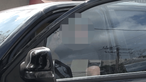 Nina carried a coffee with her … and, she slung a huge beach umbrella over her shoulder — grinning wildly and surely getting some chuckles out of her companions.