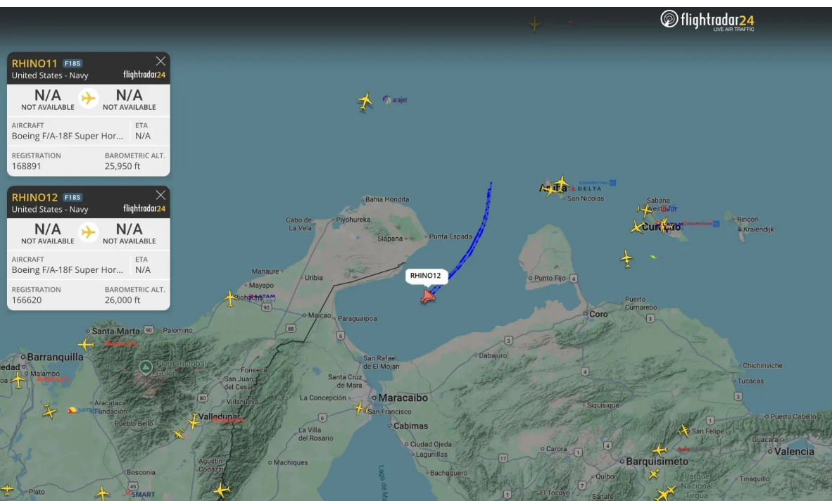 The United States deployed two F/A-18 fighter jets over the Gulf of Venezuela on Tuesday, a maneuver that marks what appears to be the closest known approach of US military aircraft to Venezuelan airspace to date.
