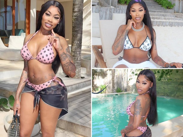 The artist — who goes by Asian Da Brat on Instagram — dropped jaws revealing designer bikinis while lounging poolside, on the sand, and out grabbing something to eat.