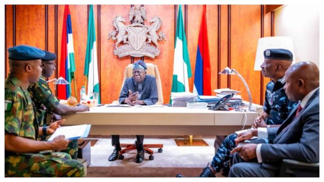 President Bola Tinubu is holding a closed-door meeting with the Service Chiefs at the Aso Rock Presidential Villa, Abuja