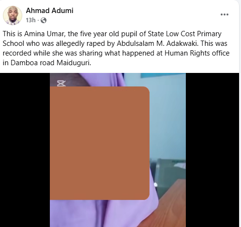 “The Borno State Police Command wishes to clarify issues arising from a social media post concerning an alleged case of sexual assault involving a 5yr old minor at State Low-Cost area of Maiduguri,” the statement read.
