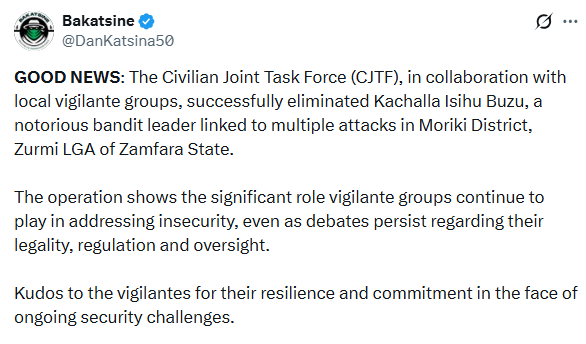 Community members described the outcome as a significant turning point, noting that the activities of the bandit leader and his network had caused prolonged fear, displacement, and economic hardship.