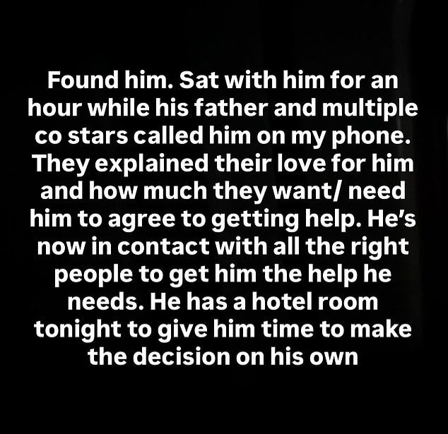“He’s now in contact with all the right people to get him to help he needs,” Harris said. “He has a hotel room tonight to give him time to make the decision on his own.”