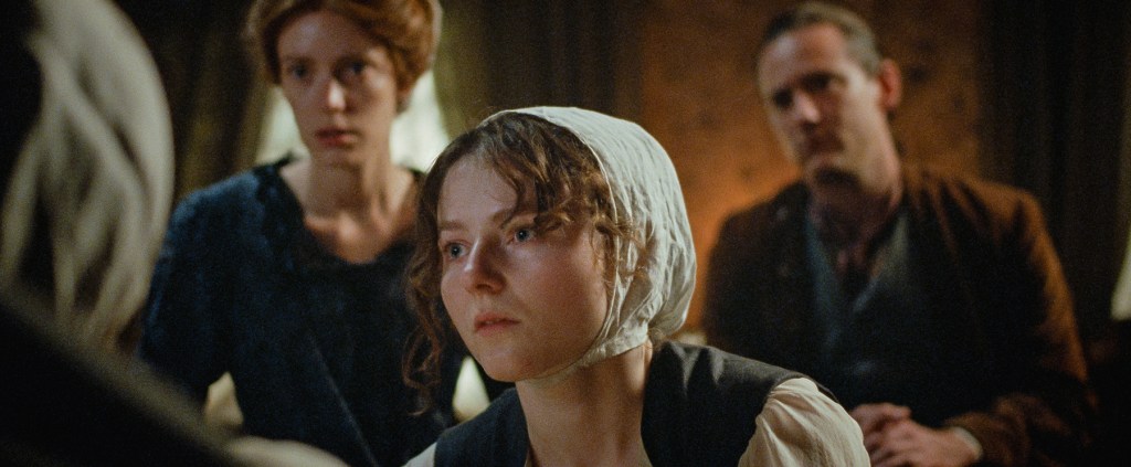 The movies tend to do better in depicting agony over ecstasy, but The Testament of Ann Lee drops a potent depiction of the latter early on. We are in Manchester, in the early 1760s. Young Ann Lee (Amanda Seyfried) works as a cleaner in a hospital, and lives with her brother William (Lewis Pullman), and her late sister’s daughter. She is a pious woman, having felt the presence of God in her life from an early age. And having been forced, due to close living quarters, to bear witness to her parents rutting like farm animals in heat, she’s also developed conflicted ideas about the pleasures of the flesh. Ann and her kin are drawn to a religious community that has separated themselves from both the Church of England and the burgeoning countermovement known as the Methodists. These “shaking quakers” are a sect to themselves.