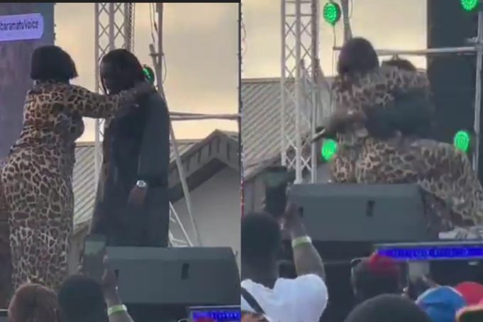 Singer, Timaya fell on stage at the Gbaramatu Christmas Carnival in Delta State, while attempting to lift plus-sized lady